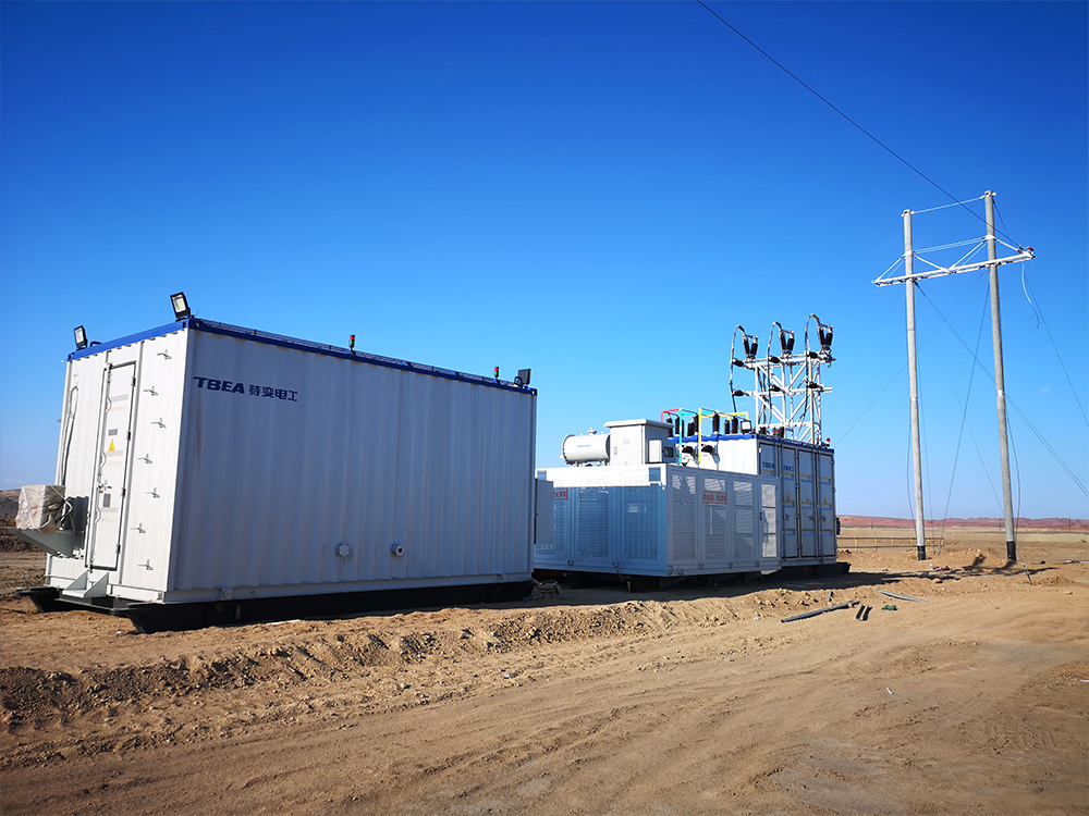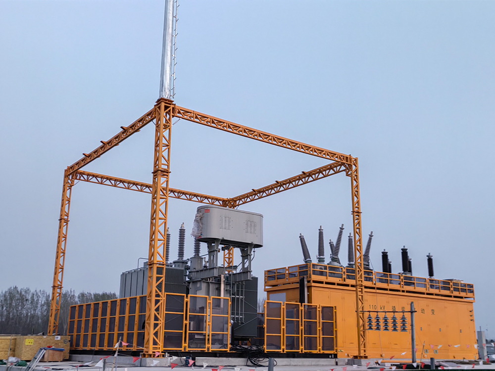 撬装式移动站是将电力设备通过工厂预制化集成于预制舱内的一种移动式变电站的实施方案,预制舱底架采用雪橇式结构,通过车辆拖拽满足在草原、戈壁、地势较为平坦区域内的机动调整;整站占地小,设备预制集成化,具有可靠性高、体积小、机动性强、建成周期短等特点,是缓解供电压力、转供负荷的“利器”,可起到故障替代、短时缓解用电紧张、临时电源补充的作用,能够大幅提升区域供电可靠性。可有效解决周边区域在炎夏、寒冬等高负荷季节主变过载、区域供电容量不足的问题和矛盾,对进一步提升电网应急响应能力提供了有力保障。